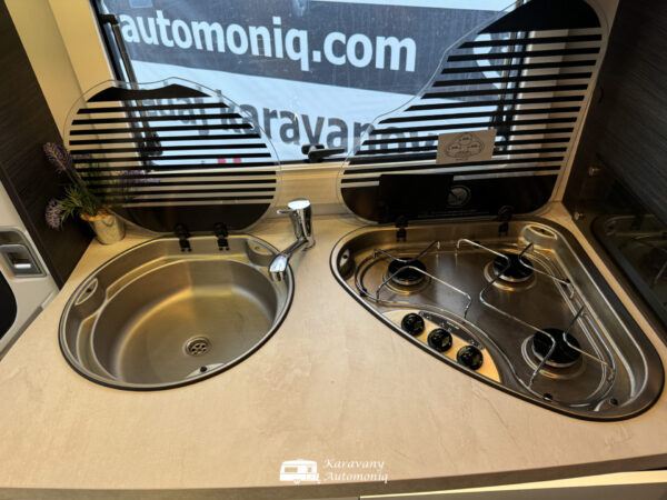 - Nerezový drez v kuchyni s trojhorákom s elektrickým zapaľovaním