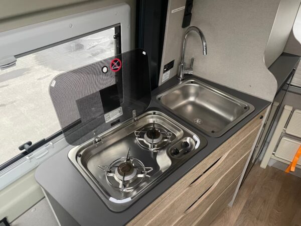 - Plynový dvojhorák s nerezovým drezom a skleneným krytom