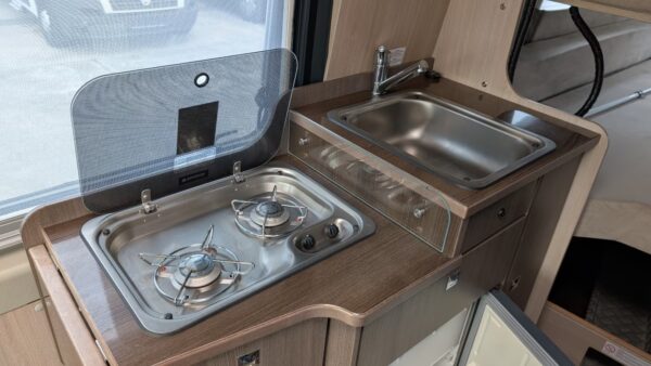- Plynový dvojhorák s nerezovým drezom a skleneným krytom