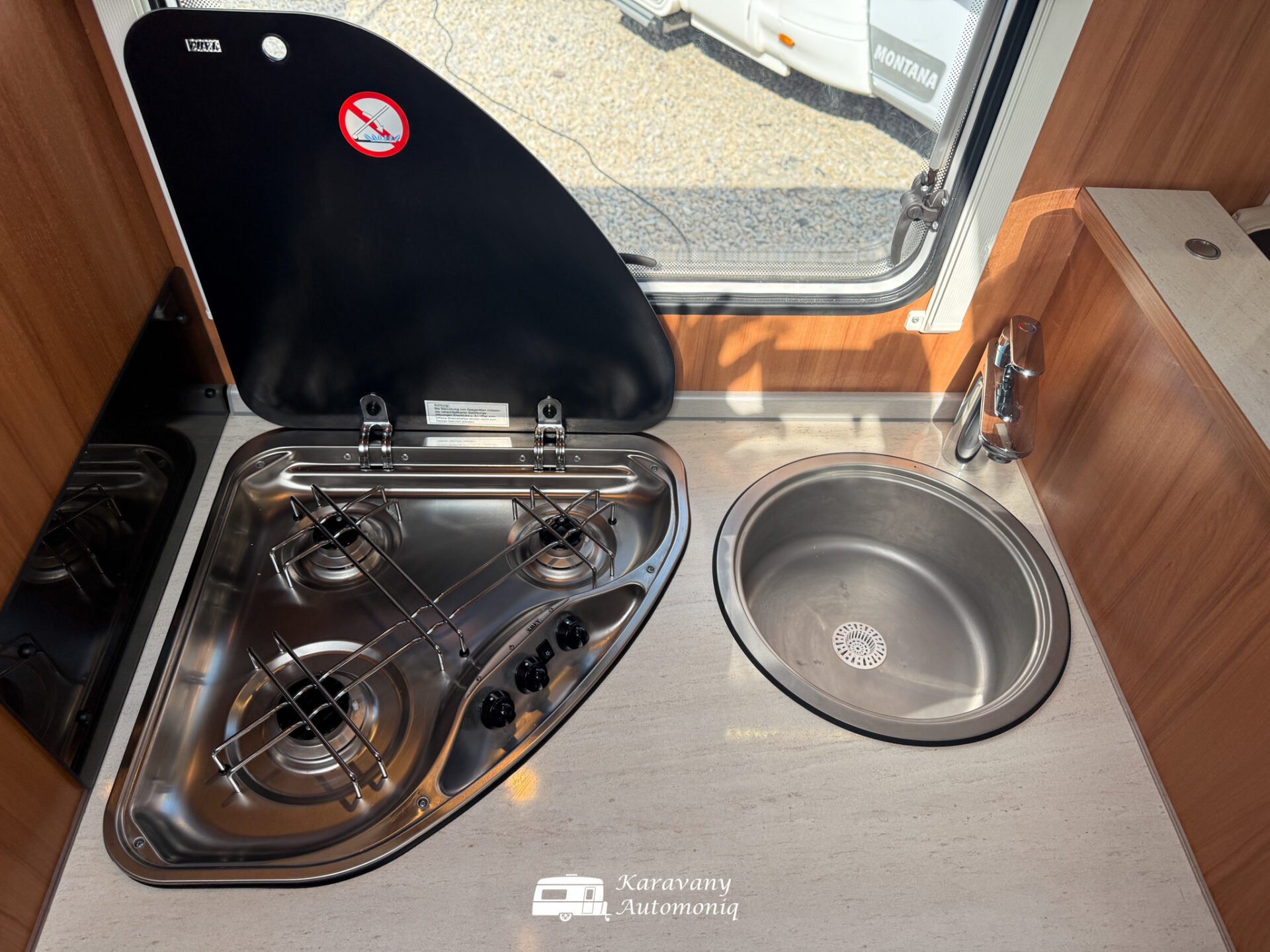 - Plynový trojhorák s elektrickým zapaľovaním, nerezovým drezom a skleneným krytom